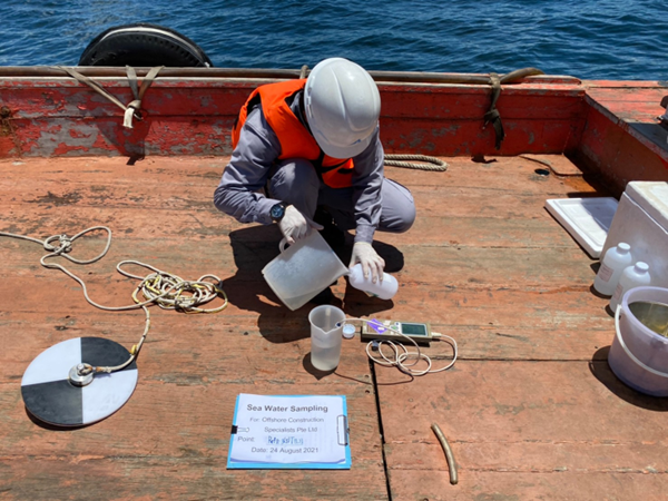 ตรวจวัดคุณภาพน้ำทะเลตามมาตรการติดตามผลกระทบสิ่งแวดล้อมสำหรับโครงการก่อสร้างท่าเทียบเรือและท่อส่งก๊าซธรรมชาติ พร้อมทั้งจัดทำรายงานผลการปฏิบัติตามมาตรการป้องกันและลดผลกระทบสิ่งแวดล้อมเพื่อนำเสนอต่อหน่วยงานที่เกี่ยวข้อง
